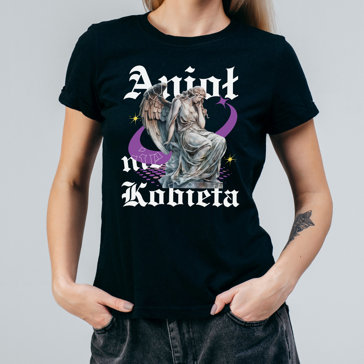 Koszulka damska Anioł nie kobieta czarna