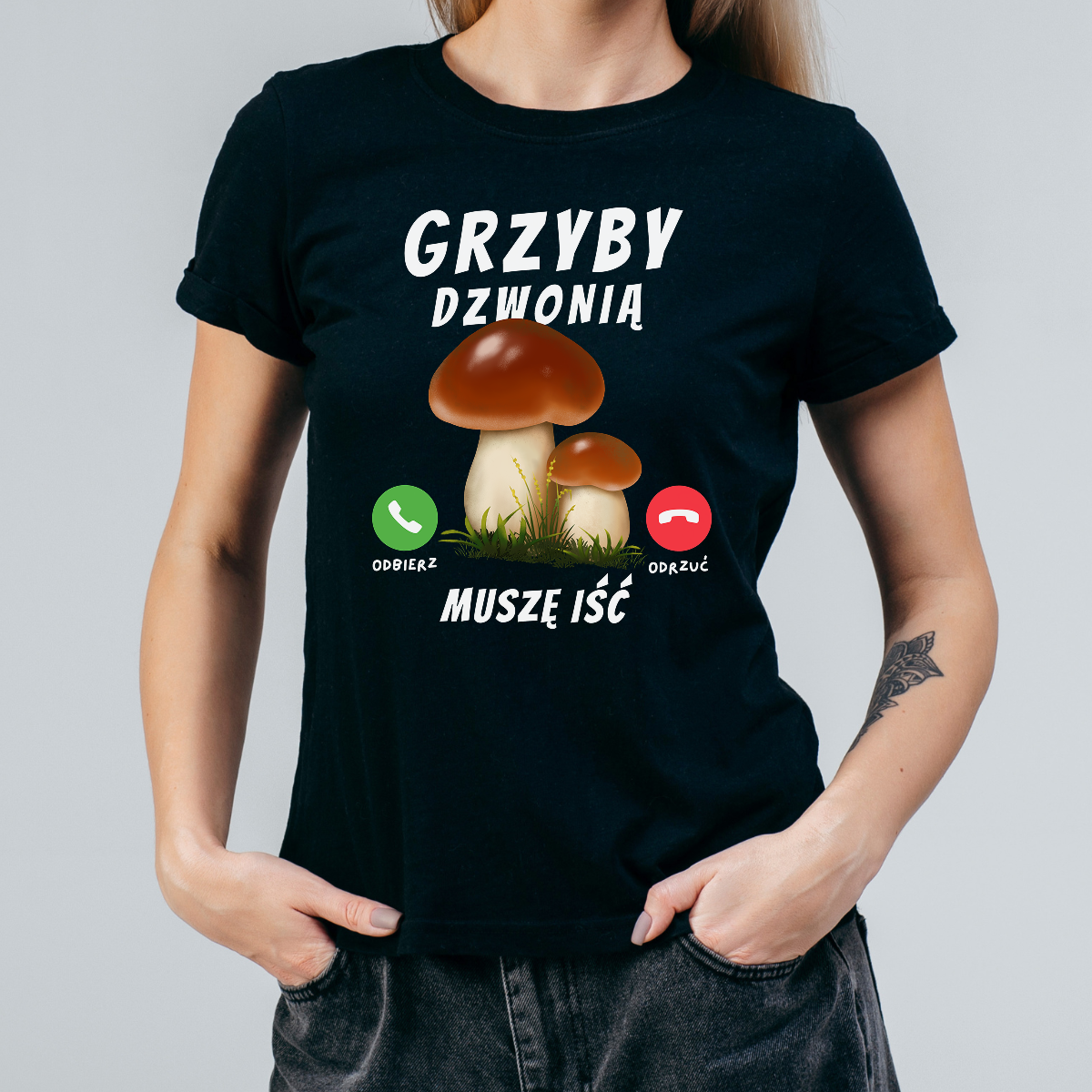 Koszulka damska Grzyby dzwonią muszę iść czarna