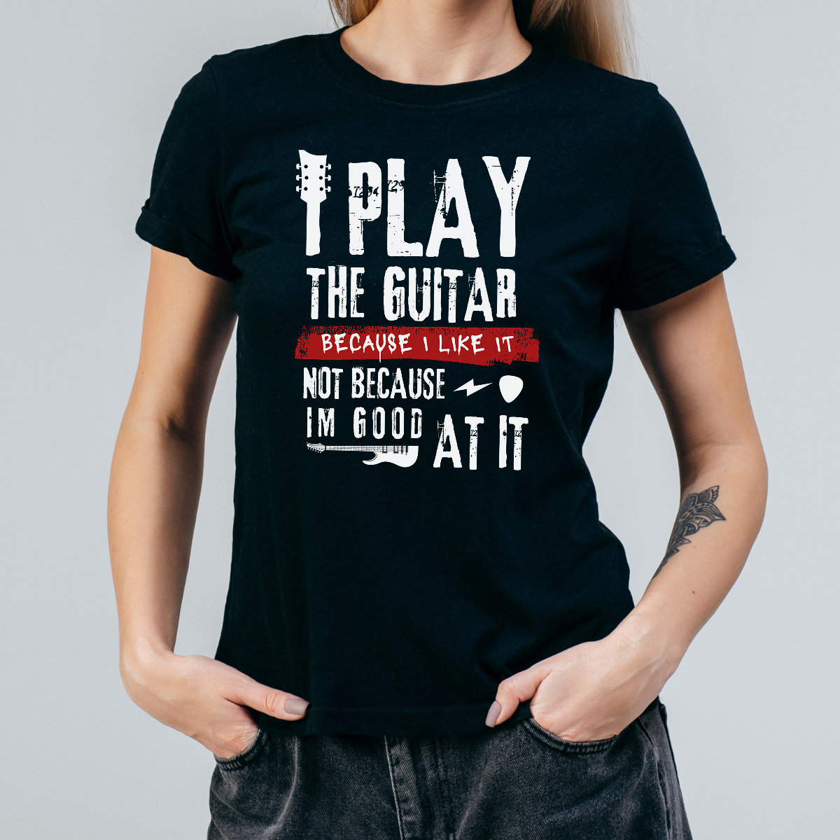 Koszulka damska I play the guitar because i like it not because im good at it czarna