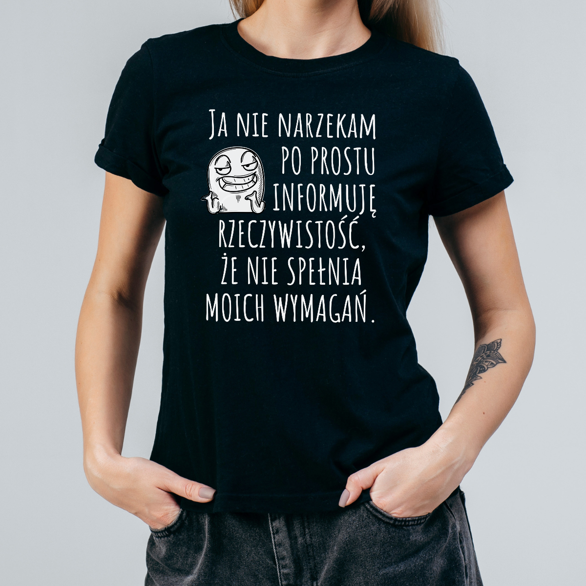 Koszulka damska Ja nie narzekam po prostu informuję rzeczywistość że nie spełnia moich wymagań czarna