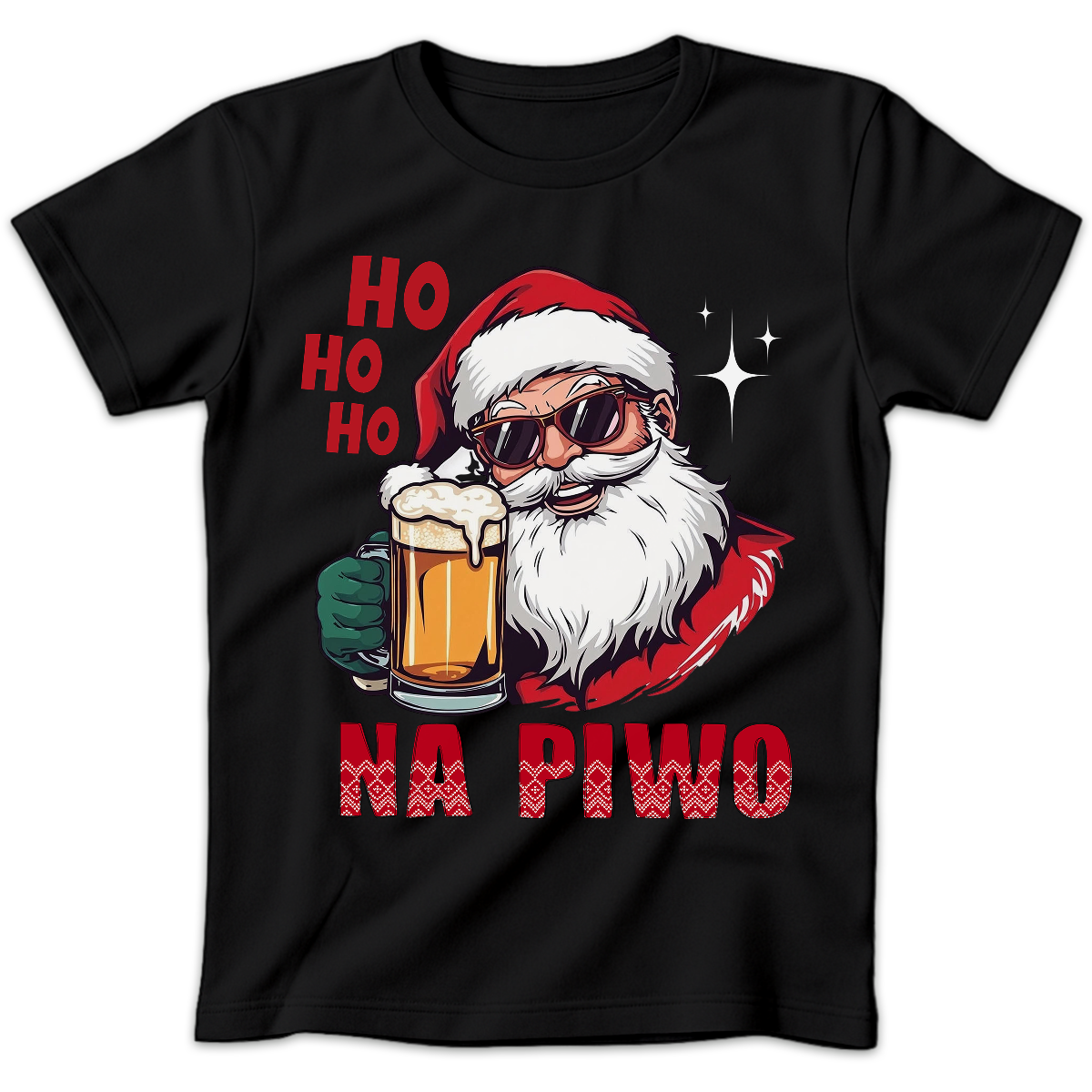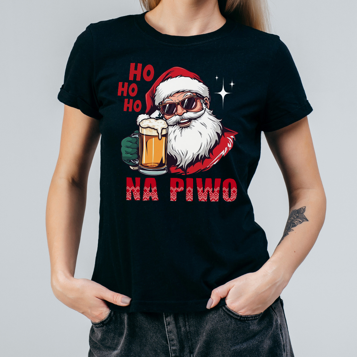 Koszulka damska Mikołaj ho ho ho na piwo czarna