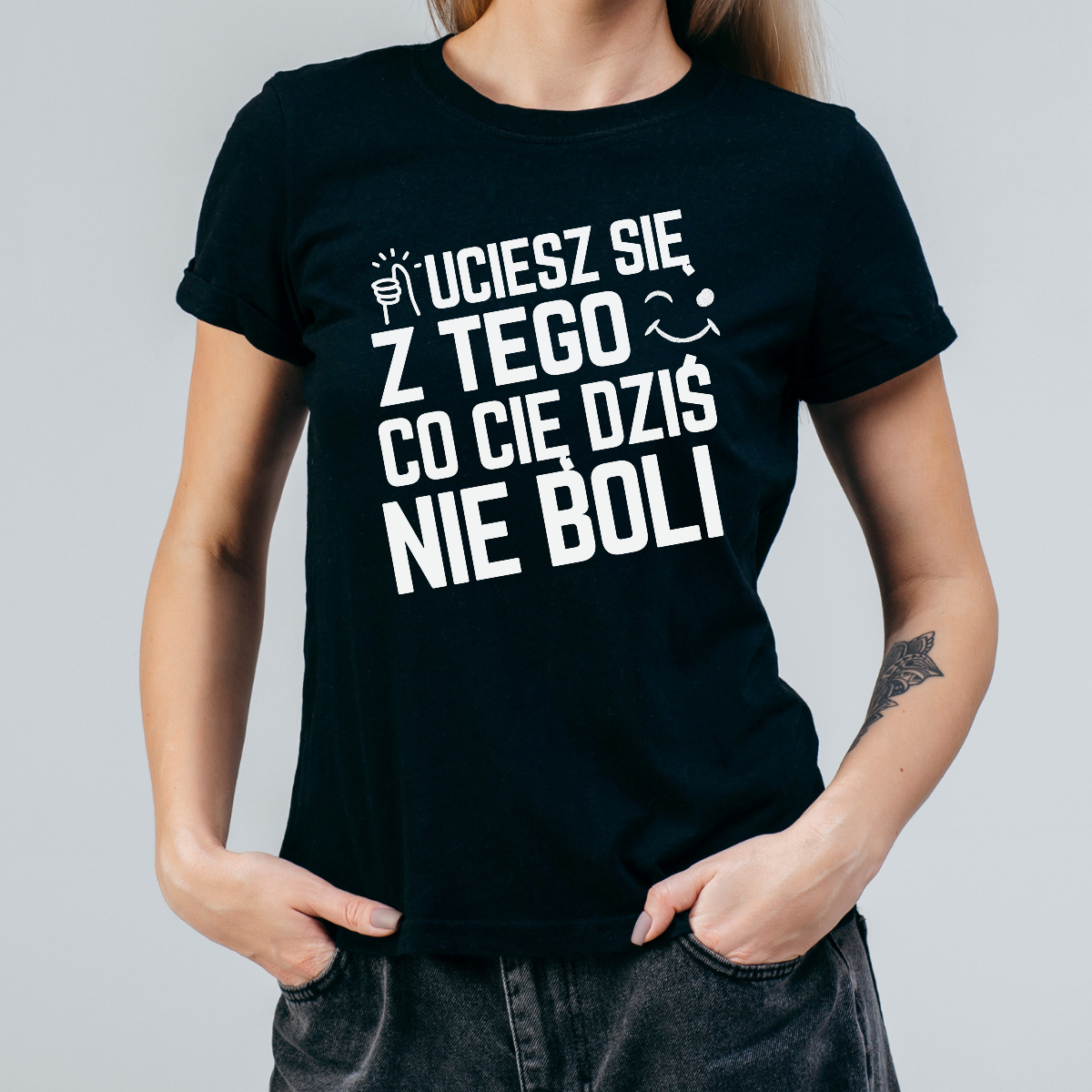 Koszulka damska Uciesz się z tego co cię dziś nie boli czarna