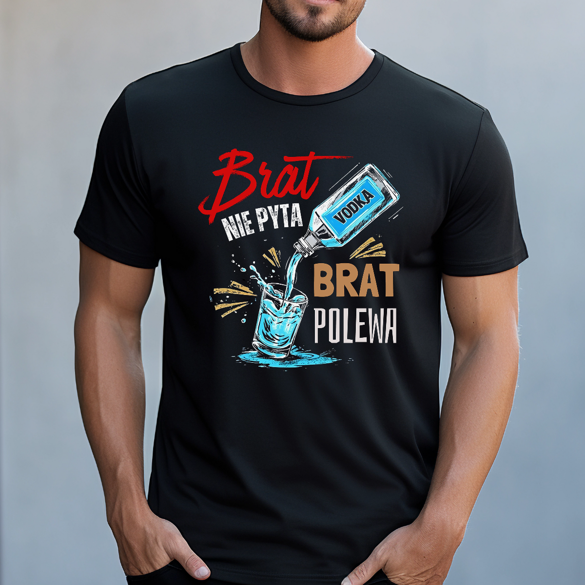 Koszulka męska Brat nie pyta brat polewa czarna