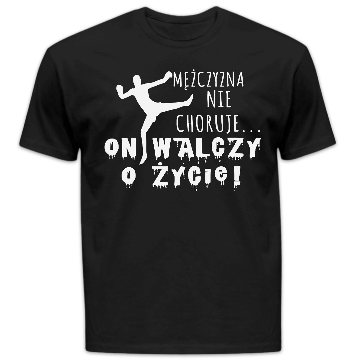 Koszulka męska Mężczyzna nie choruje on walczy o życie czarna