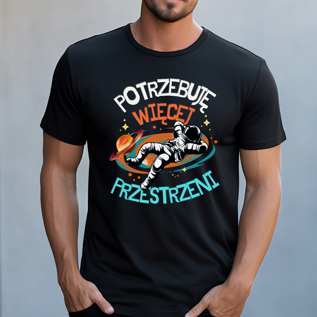 Koszulka męska Potrzebuję więcej przestrzeni czarna