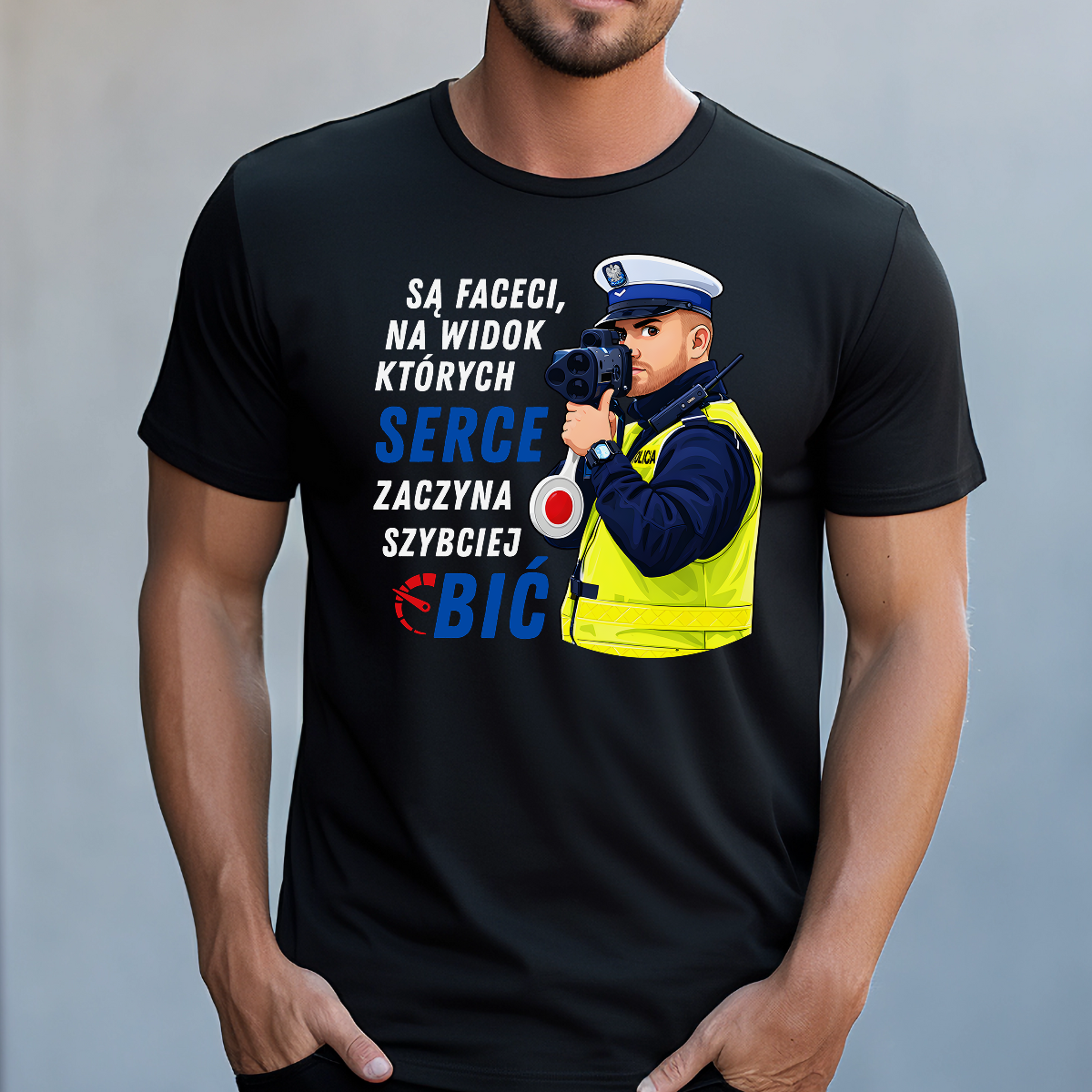 Koszulka męska Są faceci na widok których serce zaczyna szybciej bić czarna