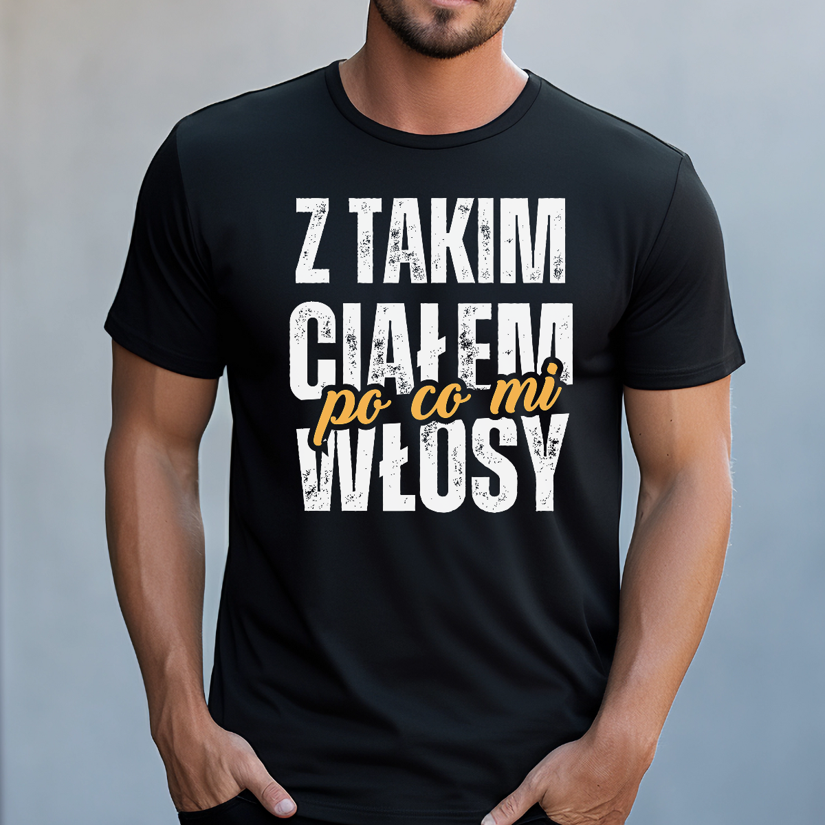 Koszulka męska Z takim ciałem po co mi włosy czarna