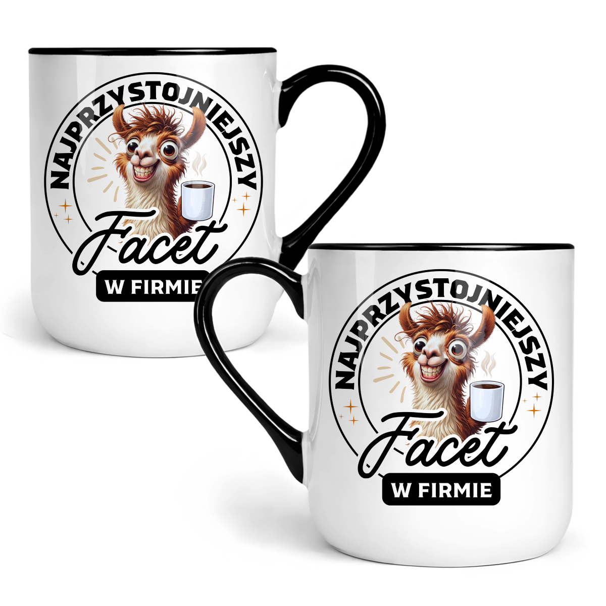 Ceramiczny kubek 330 ml z trwałym, nadrukiem po obu stronach. Biały i błyszczący z czarnym uchem oraz wnętrzem, idealnie sprawdzi się jako prezent.