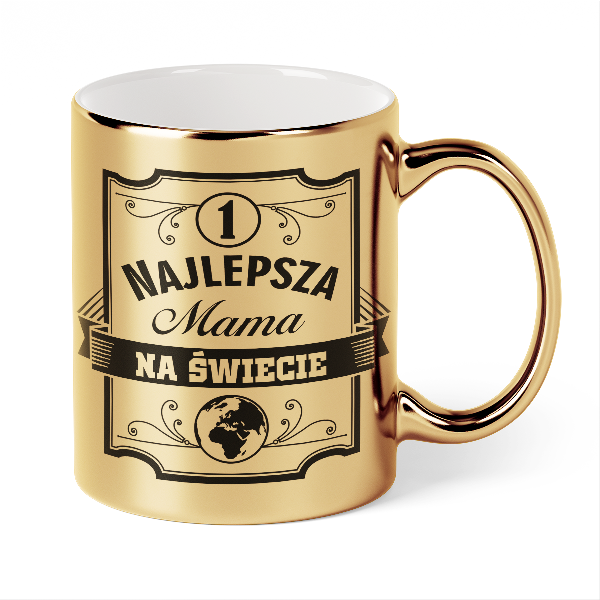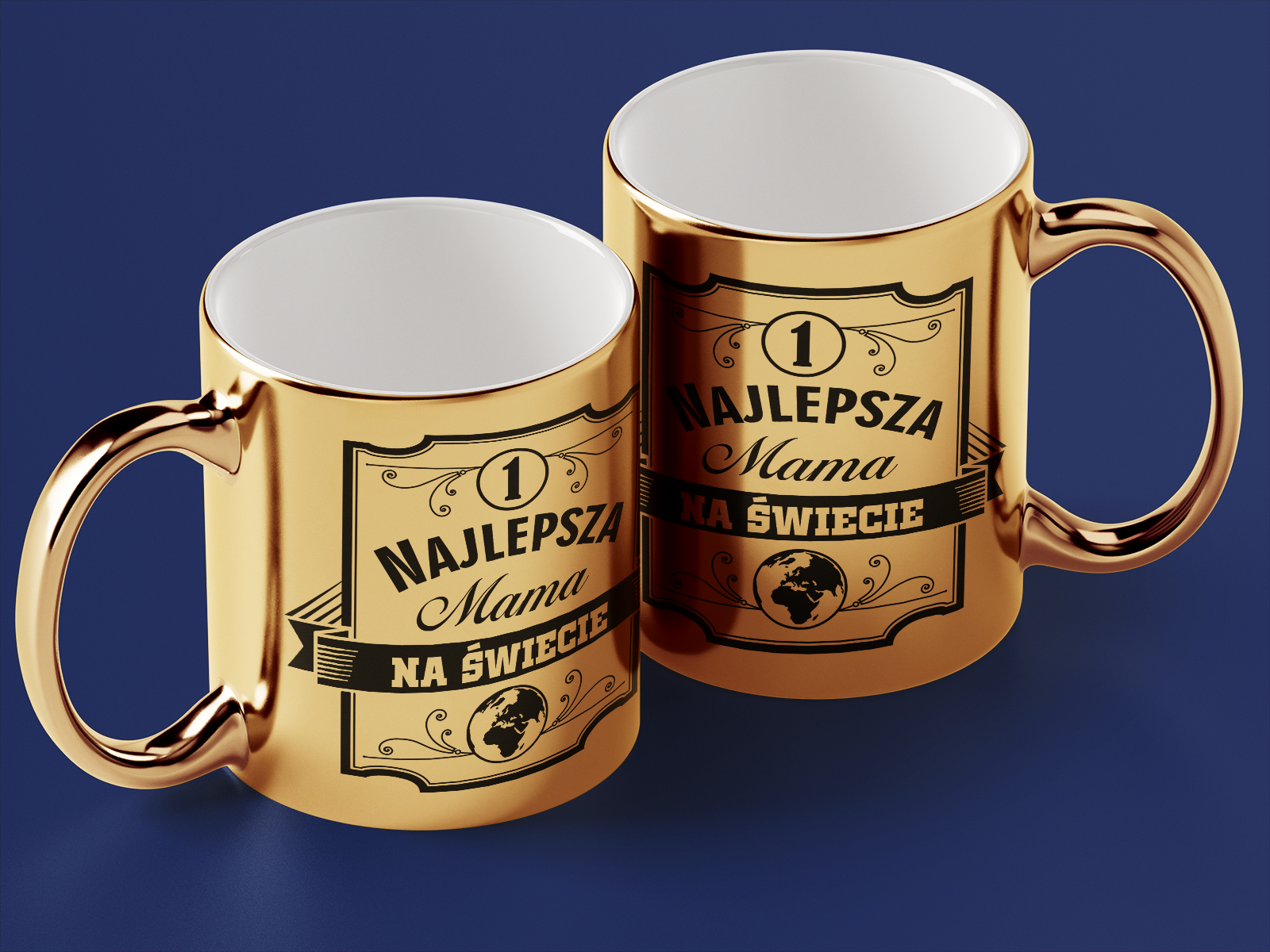 Ceramiczny kubek 330 ml z trwałym, nadrukiem po obu stronach. Złoty i błyszczący, idealnie sprawdzi się jako prezent.