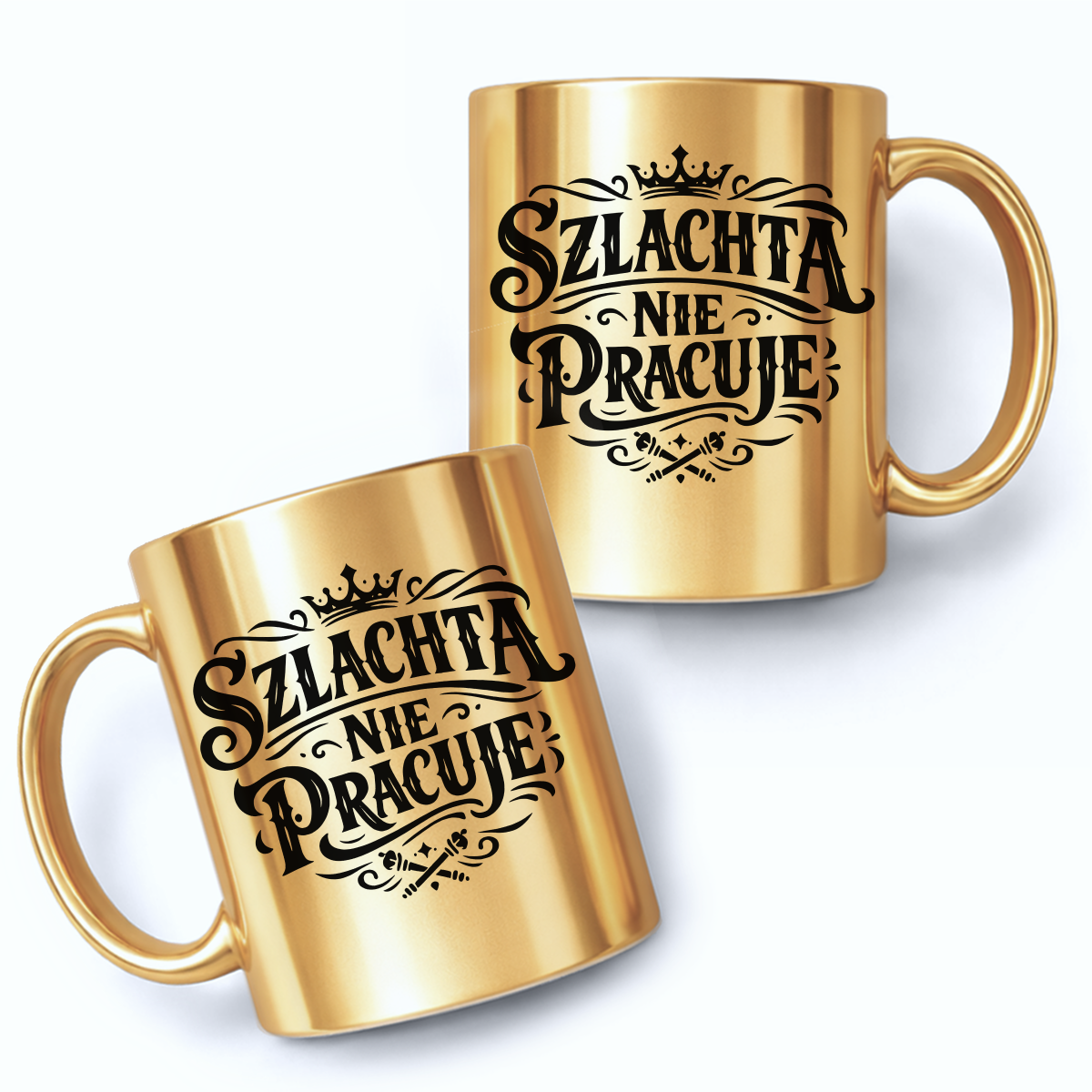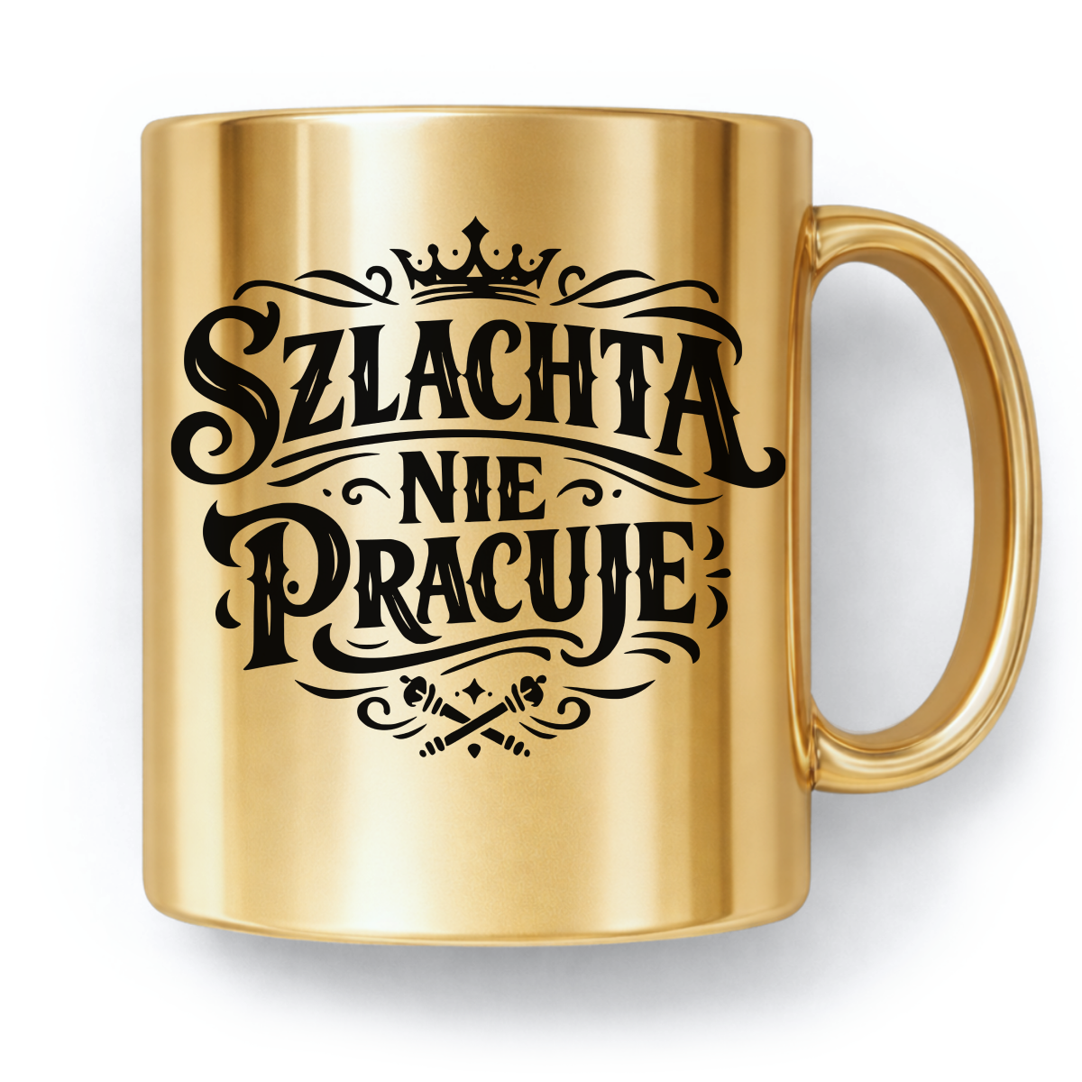 Ceramiczny kubek 330 ml z trwałym, nadrukiem po obu stronach. Złoty i błyszczący, idealnie sprawdzi się jako prezent.